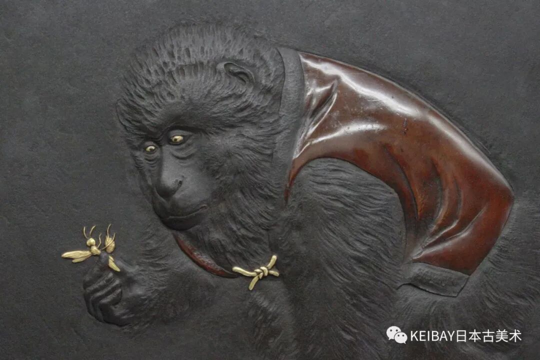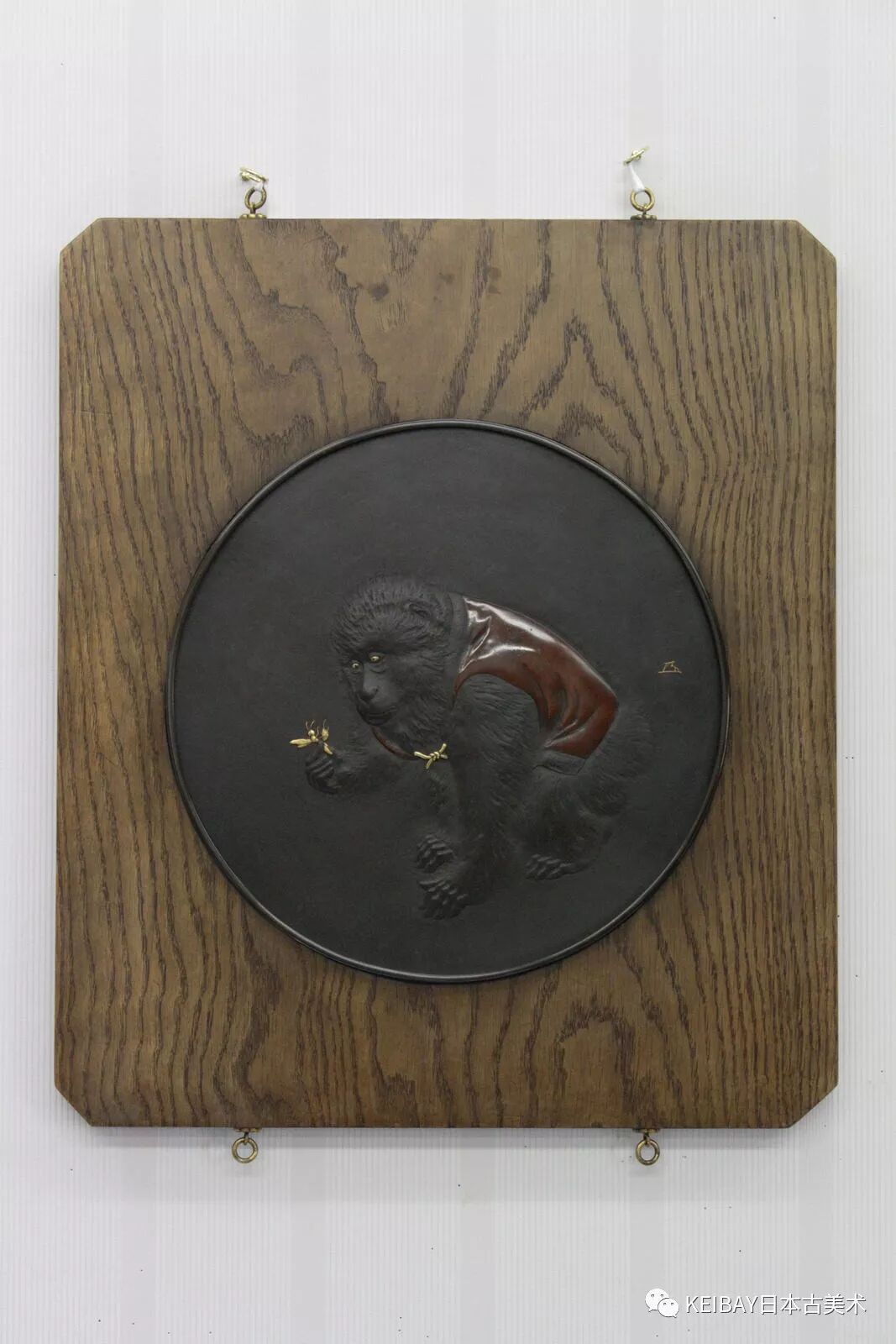 12、太田春景 在銘 鉄地銅衣猿戯蜂圖 額 落槌價 339萬